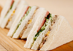 材料: 金槍魚罐頭1罐、沙拉醬2湯匙、洋蔥屑1湯匙、酸黃瓜屑1湯匙、鹽、胡椒粉1/4茶匙、黃瓜1條、生菜、番茄酌量、土司面包酌量。 做法: 1. 將金槍魚